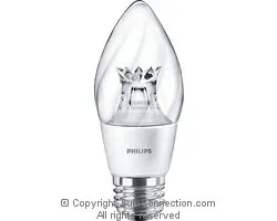 The manufacturer continuous use average life rating for this Philips 7F15/LED/827-22/E26/DIM 120V bulb is 25000 hours. The color temperature of this replacement lamp is 2700 degrees Kelvin. The rated lumens value of the Philips 7F15/LED/827-22/E26/DIM 120V replacement lamp is 500. The color rendering index of the Philips 7F15/LED/827-22/E26/DIM 120V replacement bulb is 80.