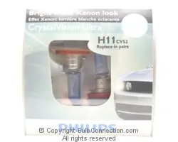The Philips H11 Crystal Vision Ultra replacement bulb is often referred to by the product code H11CVS2.