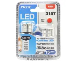 LED Replacement Bulb: IL-3157R-15Pilot LED technology provides a bright, clean and long-lasting light for your vehicular application needs. Pilot performance LED bulbs produces more light per watt than traditional incandescent bulbs and less heat, making them the perfect upgrade for enhanced visibility, safety and creative lighting needs. LED bulbs are much more economical and efficient, lasting up to 50,000 hours, which means these are probably the last set of bulbs you'll need to buy for your vehicle! All Pilot performance LED bulbs allows for easy plug and play installation. Built-in can bus technology eliminates bulb out / error messages! Description:
