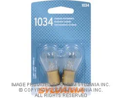 The Amazon ASIN for this Sylvania Automotive SYLVANIA 1034 Basic Miniature Bulb, (Contains 2 Bulbs) replacement lamp is B000G76QBO. Other order codes that the Sylvania Automotive 1034.BP2 replacement bulb may be referred to as are SYLVANIA 1034 Basic Miniature Bulb, (Contains 2 Bulbs), SYLVANIA1034BasicMiniatureBulb,(Contains2Bulbs), SYLVANIA/1034/Basic/Miniature/Bulb,/(Contains/2/Bulbs), SYLVANIA-1034-Basic-Miniature-Bulb,-(Contains-2-Bulbs), 1034.BP2. The manufacturer continuous use average life rating for this Sylvania Automotive 1034.BP2 bulb is 200 hours. The color temperature of this replacement bulb is 2800 degrees Kelvin. The rated lumens value of the Sylvania Automotive SYLVANIA 1034 Basic Miniature Bulb, (Contains 2 Bulbs) replacement lamp is 402.