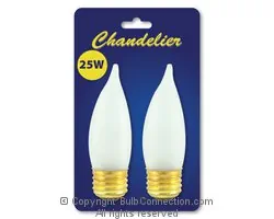 The bulb type of this Bulbrite B25EFF lamp is type CA-10. The base type of the Bulbrite B25EFF replacement lamp may also be called CA10. The Bulbrite B25EFF replacement bulb has a base type of E26 (Medium Screw). The maximum overall length of the Bulbrite B25EFF replacement lamp is 4.000 inches or 101.6 millimeters. The bulb diameter of the Bulbrite B25EFF replacement bulb is 1.260 inches or 32.0 millimeters. The Bulbrite B25EFF replacement bulb is often referred to by the product code 489025.
