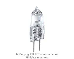 The bulb type of this Ushio JC12V-5W/G4 lamp is type T-3. The base type of the Ushio JC12V-5W/G4 replacement bulb may also be called T3. The Ushio JC12V-5W/G4 replacement lamp has a base type of G4 (Miniature 2-Pin). The maximum overall length of the Ushio JC12V-5W/G4 replacement bulb is 1.100 inches or 27.9 millimeters. The bulb diameter of the Ushio JC12V-5W/G4 replacement lamp is 0.354 inches or 9.0 millimeters. The light center length of this Ushio JC12V-5W/G4 lamp is 0.800 inches or 20.3 millimeters. The Ushio JC12V-5W/G4 replacement lamp is often referred to by the product code 1004031.