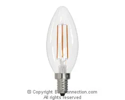 The bulb type of this Bulbrite LED5B11/27K/FIL/E12/3 lamp is type B-11. The base type of the Bulbrite LED5B11/27K/FIL/E12/3 replacement bulb may also be called B11. The Bulbrite LED5B11/27K/FIL/E12/3 replacement bulb has a base type of E12 (Candelabra Screw). The maximum overall length of the Bulbrite LED5B11/27K/FIL/E12/3 replacement bulb is 3.900 inches or 99.1 millimeters. The bulb diameter of the Bulbrite LED5B11/27K/FIL/E12/3 replacement lamp is 1.370 inches or 34.8 millimeters. The Bulbrite LED5B11/27K/FIL/E12/3 replacement bulb is often referred to by the product code 776626.