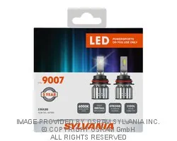 2 Pack. FOG & POWERSPORT. FOR OFFROAD USE ONLY. LED bulbs are an acceptable retrofit for a Fog light application and are not federally regulated, state and local regulations may vary. SYLVANIA LED 9007 Fog & Powersports Bulbs (2 Pack) SYLVANIA LED Fog and Powersport LED bulbs let you update your vehicle’s lights with the clarity and performance that LED lighting technology brings! Legal for on road use as a fog light replacement in your car or truck, SYLVANIA LEDs cut through foggy conditions on the road ahead. Available as an off-road upgrade to your powersport headlights, LED headlight bulbs deliver enhanced clarity and contrast to see what obstacles lie on tough terrain and trails. Engineered to provide a superior 6000K white light, as well as style and durability, the SYLVANIA LED Fog and Powersports bulbs will be sure to turn heads. These direct LED replacement bulbs are made with high performance materials ensuring their durability and performance. FEATURES SUPERIOR ILLUMINATION: 6000K cool-white light provides better clarity to see what obstacles lie ahead RELIABLE: Built with aviation grade aluminum and turbo-cooled to maximize life, LED design withstands temperature and shock for optimal performance EASY DIY INSTALLATION: A direct replacement for fog bulbs in cars and trucks or headlight bulbs for off-road powersports. No polarity, compact design LONG LASTING DESIGN: Backed by a 5-year limited warranty, the rugged design is built to outlast halogen fog bulbs SMART MAINTENANCE: Always replace bulbs in pairs to ensure equal brightness and color SAFETY: High-quality SYLVANIA bulbs are designed to perform to all relevant safety standards set for the lighting application TRUSTED BRAND: SYLVANIA is a trusted OEM automotive lighting manufacturer, with over 100 years of superior optical engineering experience SPECIFICATIONS