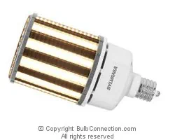 100W lumen selectable corn cob lamp, 4000K, >80 CRI, mogul base, 120- 277V, DLC 5.1 compliant Application ULTRA LED HID replacement lamps are ideal for indoor high/low bay lighting and outdoor decorative post top fixtures in walkway lighting applications. The SYLVANIA ULTRA LED high lumen lamp provides excellent color rendering (82 CRI) in comparison with traditional high pressure sodium and metal halide lamps, and a selection of color temperatures. Benefits and Features — Lumen Selectability enabled by the switch located on the head of the lamp makes inventory management easy and allows for customizable light — Up to 157 LPW — CRI >80 — Energy savings up to 76% — 360° beam angle (or omnidirectional) with Type V distribution — Rated for open and enclosed fixtures Electrical — 120-277Vac — Power Factor >98% — THD <20% — Optical design efficiently directs light output in a 360° (horizontal) beam angle (or omnidirectional) with Type V distribution Rated Life — 50,000 hours (L70) Ambient Operating Range — -40°F to +122°F (-40°C to +50°C) Certifications and Listings — cULus (1598C and 1993 listed) — RoHS — FCC — Lead Free — Mercury Free — DLC 5.1 — Damp Rated Installation — Requires easy ballast bypass. — Lamp operates directly on line voltage 120-277Vac – A safety cable is included with each 80W, 100W or 120W unit for additional support |