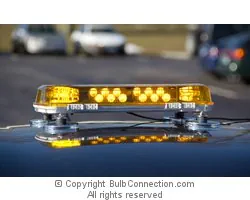 The Whelen Century Mini 16" Amber Light bar Magnetic/Suction Mount, Model# MC16MA bulb is a 12 volt bulb.