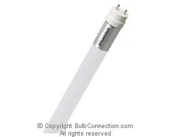 Replaces 32W. SYLVANIA Lamps ECO LED T8 Type B Ballast-Free Application SYLVANIA ECO LED T8 lamps deliver a quality LED light, at an affordable price. This long-lasting, economical line provides the perfect lighting solution for any budget for office, industrial or education. Benefits and Features — Internal driver/line voltage linear LED T8 with optimized glass optics & G13 medium bi-pin base — Patented built-in safety circuit prevents current from flowing through the lamp when only one end is engaged in the socket thereby eliminating potential shock hazard — No risk of electrical arcing between the lamp pins and the lamp holders — Double ended lamp is wired end-to-end preventing nonpassive failure of a fluorescent lamp should it be inadvertently installed in the fixture — No warm-up time, instant-on with full light output and stable lamp-to-lamp color — No UV emission — Approved for use with tube guards — Maximize energy savings with occupancy sensors — Up to 120 LPW (Lamp efficacy) — CCT: 3500K, 4100K, 5000K — CRI: 80 — Light Emitting Angle 340°; Beam Angle 220° Electrical — Installed directly on 120-277V; no ballast required — Power factor >0.90 — THD <20% — Non-dimmable — EMI/RFI: FCC Title 47 CFR, Part 15 Subpart B Class B Rated Life — 50,000 hours (L70) for 18W lamps — 35,000 hours (L70) for 17W lamps Warranty — 18W: 5 Year limited lamp warranty (24/7 operation) — 17W: 3 Year limited lamp warranty (24/7 operation) — ECO LED T8 Ballast-Free lamps are covered by the LED T8 Lamp Limited Warranty. For additional details, please visit www.ledvanceUS.com/warranty Ambient Operating Range — -4°F to 113°F (-20°C to 45°C) Max Case Temperature — 158°F (70°C) Certifications and Listings — cULus 1993 & 1598C — RoHS — Lead Free — Mercury Free — FCC* — NSF** Installation — Please refer to the Installation manual included inside the packaging and the applications information listed below for more information. Application Information