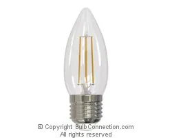 The bulb type of this Bulbrite LED5B11/27K/FIL/E26/3 lamp is type B-11. The base type of the Bulbrite LED5B11/27K/FIL/E26/3 replacement bulb may also be called B11. The Bulbrite LED5B11/27K/FIL/E26/3 replacement bulb has a base type of E26 (Medium Screw). The maximum overall length of the Bulbrite LED5B11/27K/FIL/E26/3 replacement bulb is 3.700 inches or 94.0 millimeters. The bulb diameter of the Bulbrite LED5B11/27K/FIL/E26/3 replacement lamp is 1.370 inches or 34.8 millimeters. The Bulbrite LED5B11/27K/FIL/E26/3 replacement bulb is often referred to by the product code 776733.