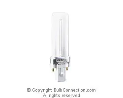 Replacement for GE F7BX/SPX27/827, 37846. Ultra™ Compact FluorescentUSHIO’s compact fluorescent lamps provide all the benefits of linear fluorescent lamps in a compact size. These lamps are highly efficient at 67 lumens per watt and 10,000 hours average life. The Triphosphor coatings on these lamps render colors closer to that of nature allowing a coloring index of 82 in a variety of color temperatures. Available in single, double and triple tubes with wattages ranging from 5 watts to 42 watts. Color temperatures range from 2700K to 6500K. Features & Benefits