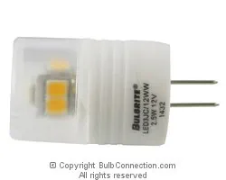 This Bulbrite LED3JC/12WW bulb is a 2.5 watt bulb. The Bulbrite LED3JC/12WW lamp is a 12 volt bulb.