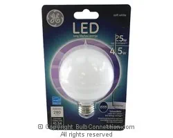 The bulb type of this GE LED4DG25M-W/TP lamp is type G-25. The base type of the GE LED4DG25M-W/TP replacement bulb may also be called G25. The GE LED4DG25M-W/TP replacement lamp has a base type of E26 (Medium Screw). The maximum overall length of the GE LED4DG25M-W/TP replacement bulb is 4.300 inches or 109.2 millimeters. The bulb diameter of the GE LED4DG25M-W/TP replacement lamp is 3.130 inches or 79.5 millimeters. The GE LED4DG25M-W/TP replacement bulb is often referred to by the product code 68171.