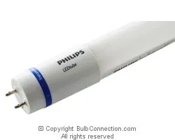 Not dimmable. 12NC Logistics Code: 929001118604. Model Number: 9290011186. Case UPC Code: 50046677452082. Philips LED T8 InstantFit Lamps are an ideal energy saving choice for existing linear fluorescent fixtures. Features & Benefits- Over 41% energy savings vs fluorescent electronic instant start systems; No mercury allowing for non-hazardous waste disposal; Emits virtually no UV rays or IR; Glass-free for safer working conditions; Instant on, no flicker or buzz; Fits into existing light fixtures; Compatible with Instant Start ballasts* eliminating the need for rewiring and allows fixtures to maintain original UL compliance. Applications- Frequent On/Off Switching cycles, Buildings that desire to be mercury free, Full light output in spaces with temps down to -22 degrees F (-30 degrees C). |