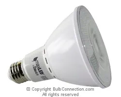 The manufacturer continuous use average life rating for this MaxLite 12P30LNDLED27NF bulb is 25000 hours. The color temperature of this replacement lamp is 2700 degrees Kelvin. The rated lumens value of the MaxLite 12P30LNDLED27NF replacement bulb is 850. This MaxLite 12P30LNDLED27NF lamp has a beam spread of 25 degrees. The color rendering index of the MaxLite 12P30LNDLED27NF replacement lamp is 80.